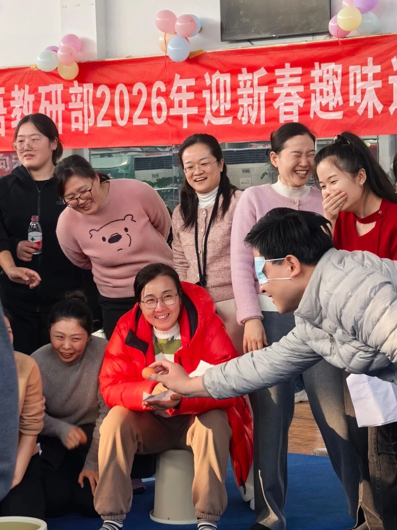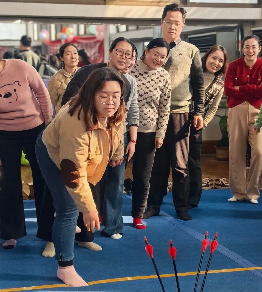 本次运动会设置了五个趣味盎然的团体项目,并以科室为单位,形成了“领导班子VS行政组”、“视听说第一教研室VS视听说第二教研室”、“读写译第一教研室VS读写译第二教研室”三组精彩的对抗阵营。这种别开生面的分组方式,不仅瞬间点燃了老师们的参与热情,更在轻松愉快的氛围中,为平日在不同岗位辛勤耕耘的同事们搭建了一个深度交流与协作的绝佳平台。