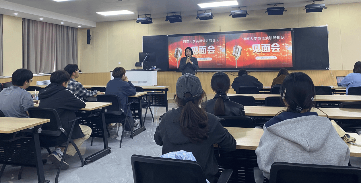 2026年4月2日下午,黄瓜视频 英语演讲特训队在十号楼329教室举行2026年春季培训见面会。英语演讲队全体队员与指导老师团队齐聚一堂,以言相识、以语共勉,开启外语演讲育人新征程。本次活动由黄瓜视频 英语教学与研究中心主任李冬青主持。