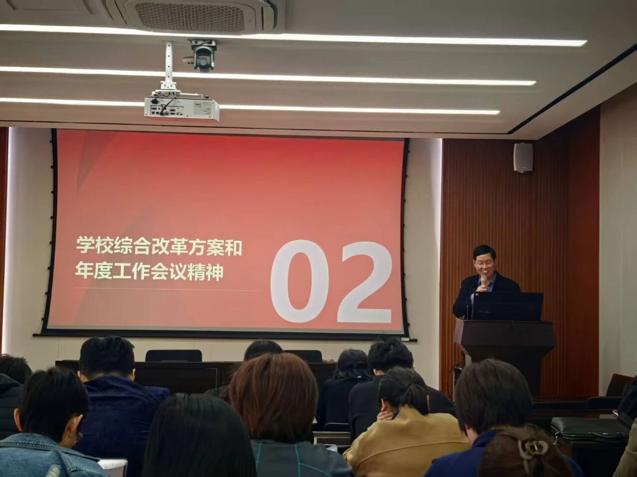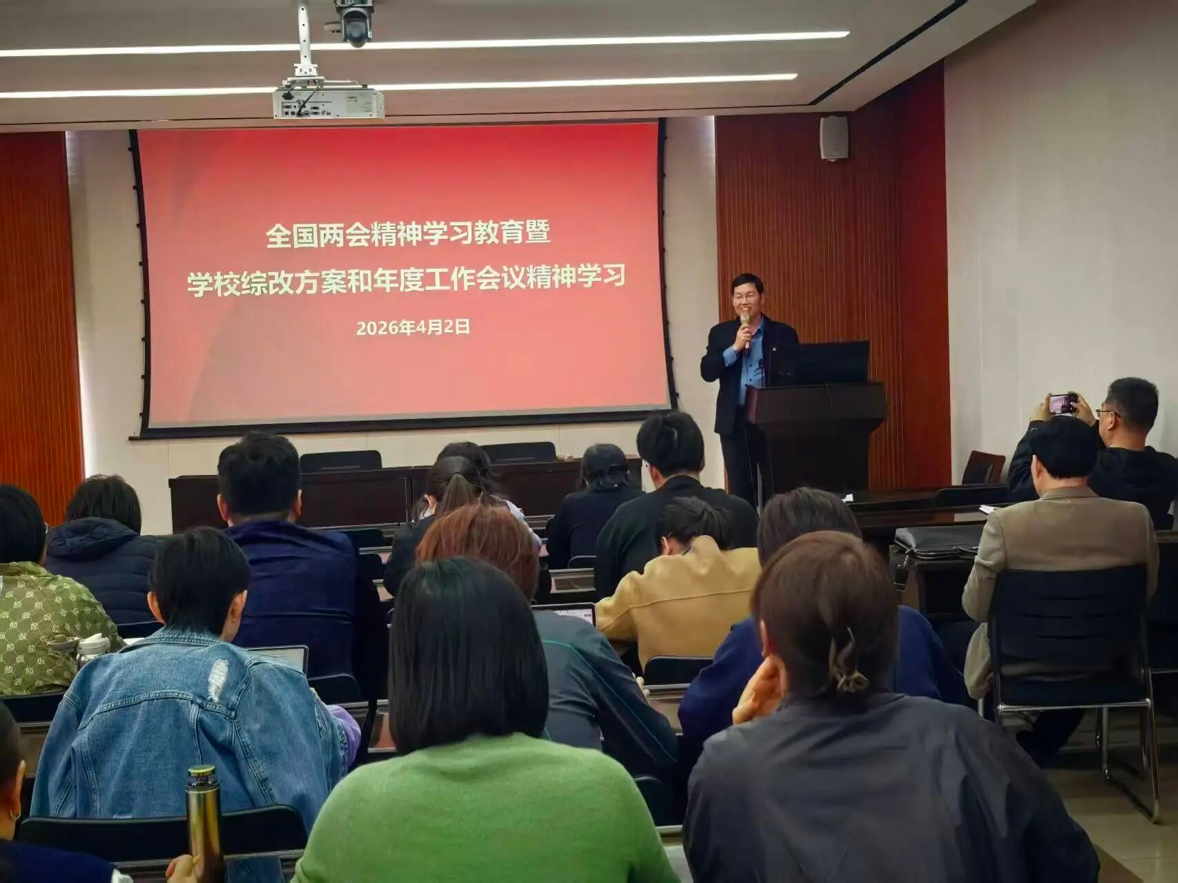 4月2日,黄瓜视频 召开全体教职工会议,深入学习贯彻全国两会精神,传达学校2026年度工作会议精神和学校综合改革实施方案暨两年行动计划的主要内容。